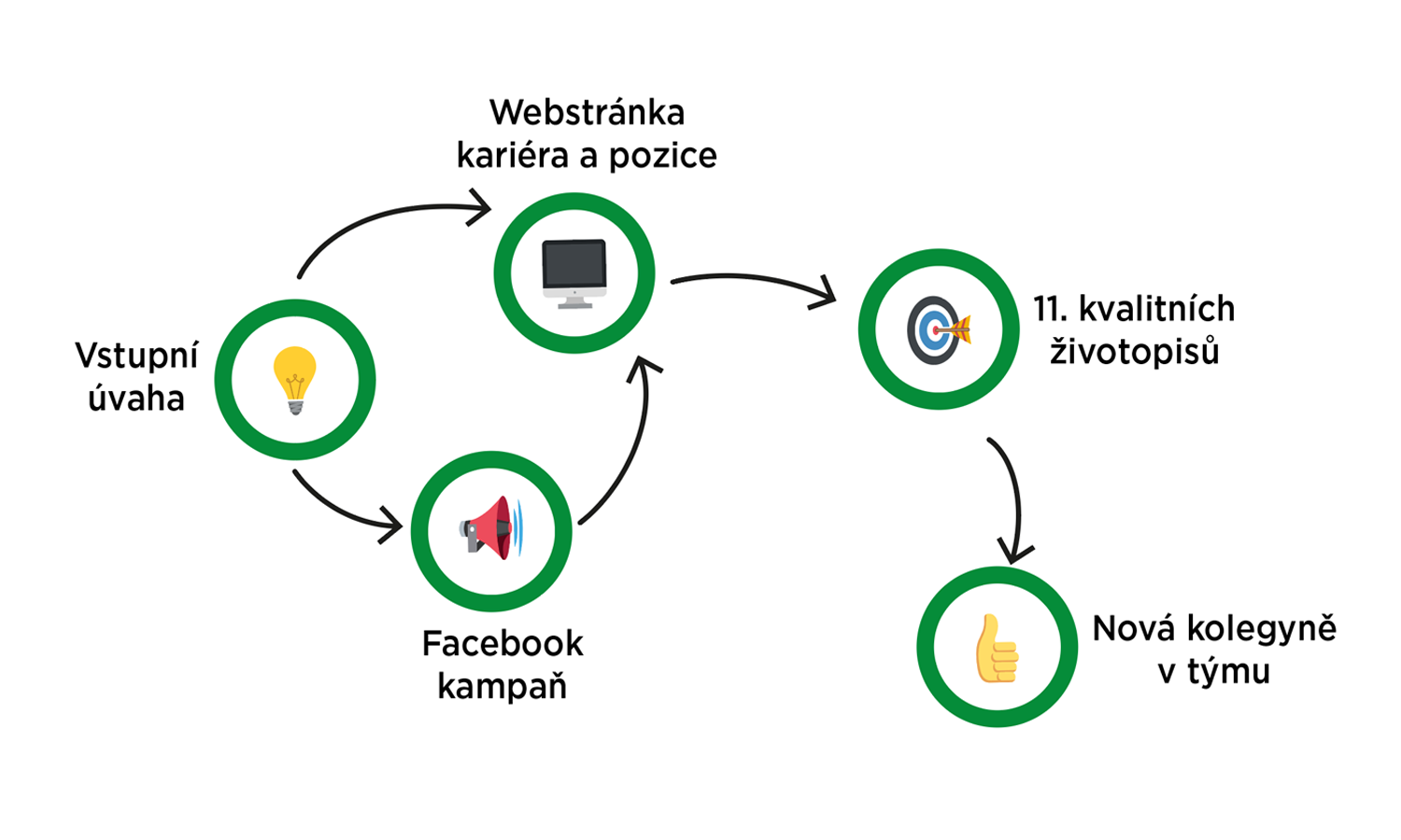 Nejsme personální agentura, takže Vás nebudeme učit personální postupy. Náš úspěch byl ve webu, podkladech a zajímavé kampani.
