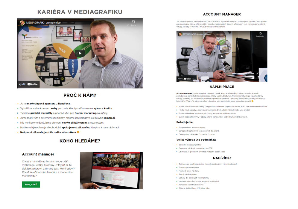 - natočili 2 videa (o firmě, o pozici)
