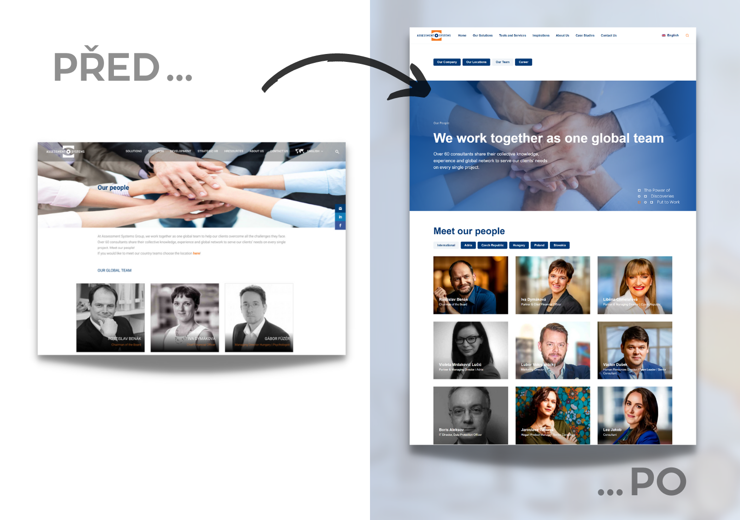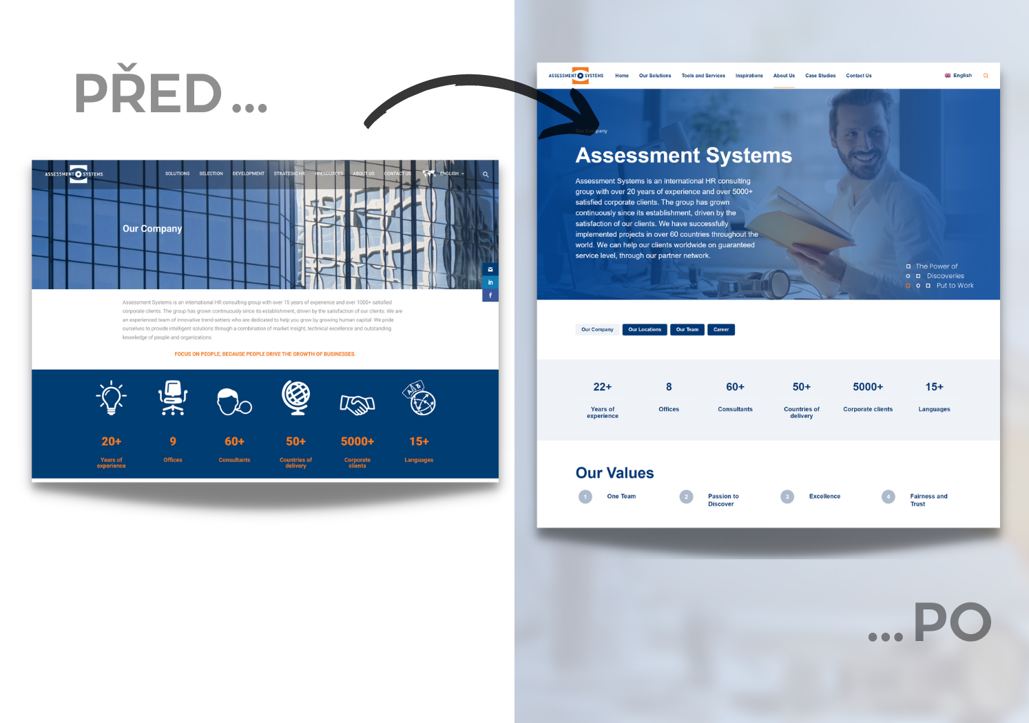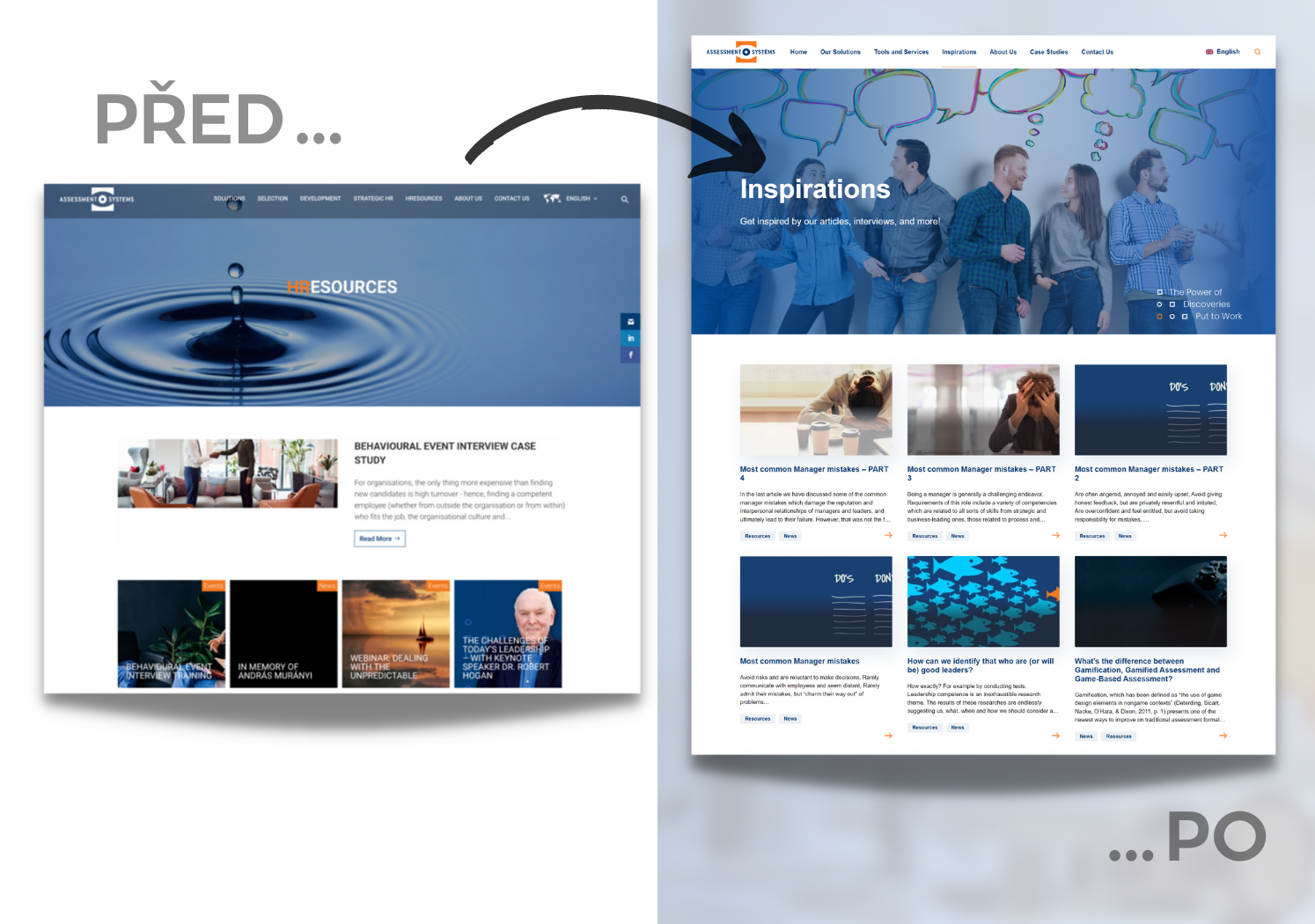 Webové stránky pro mezinárodní společnost poskytující HR rozvojové programy