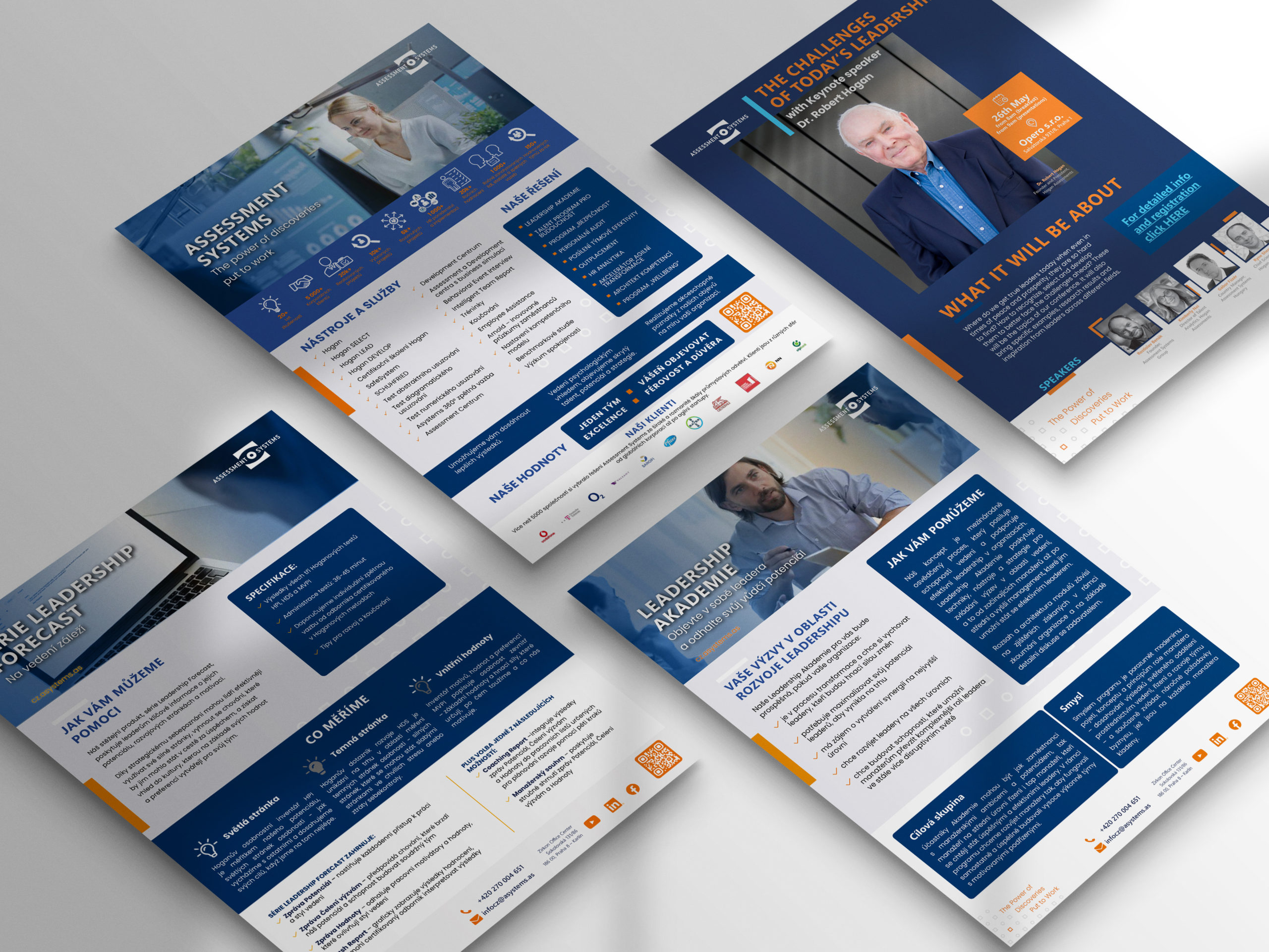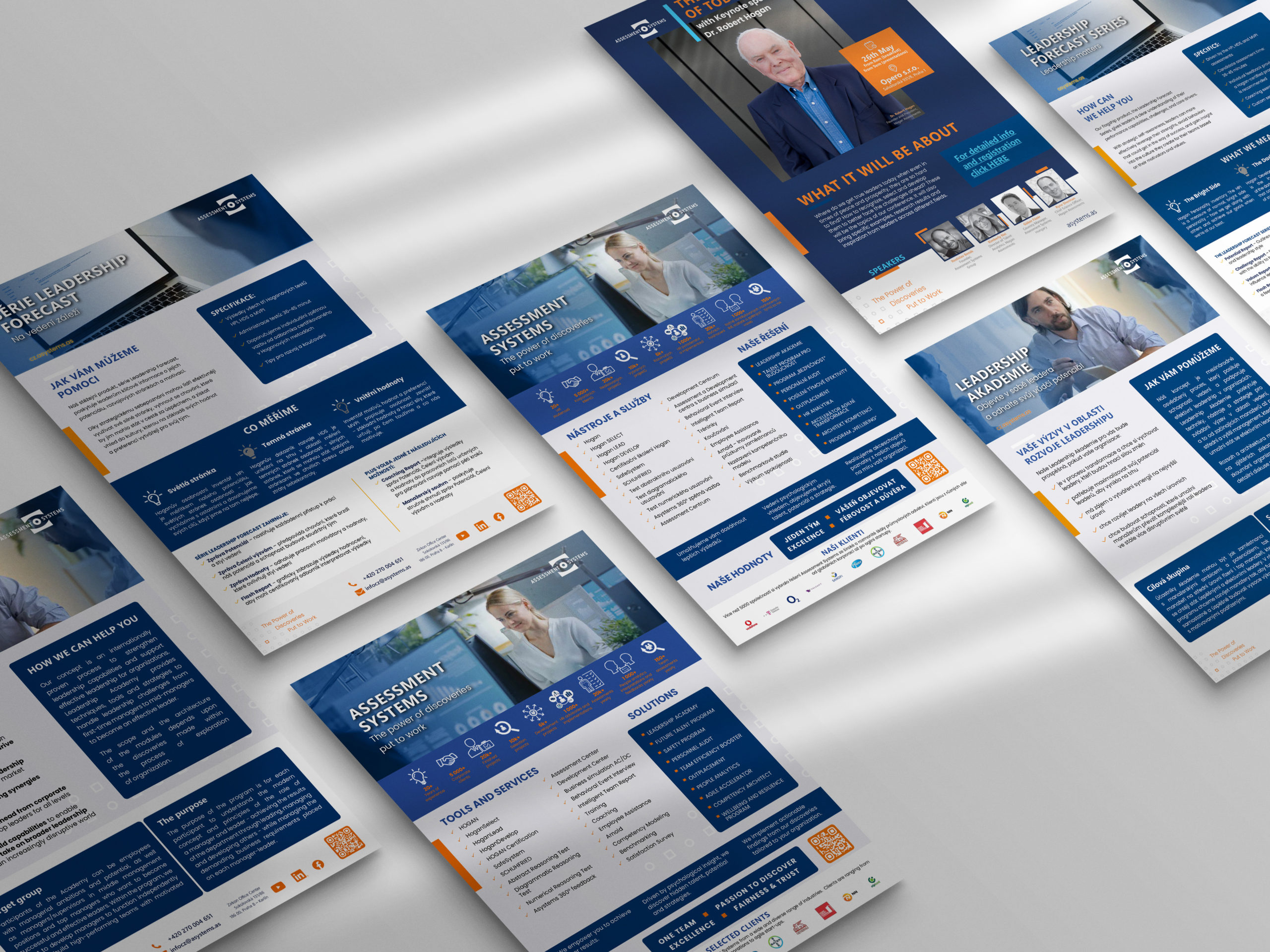 Vytvořili jsme klientovi několik obsahově různých informačních letáků (i v jazykových mutacích), pozvánek na konferenci a reklamní předměty s logem firmy.