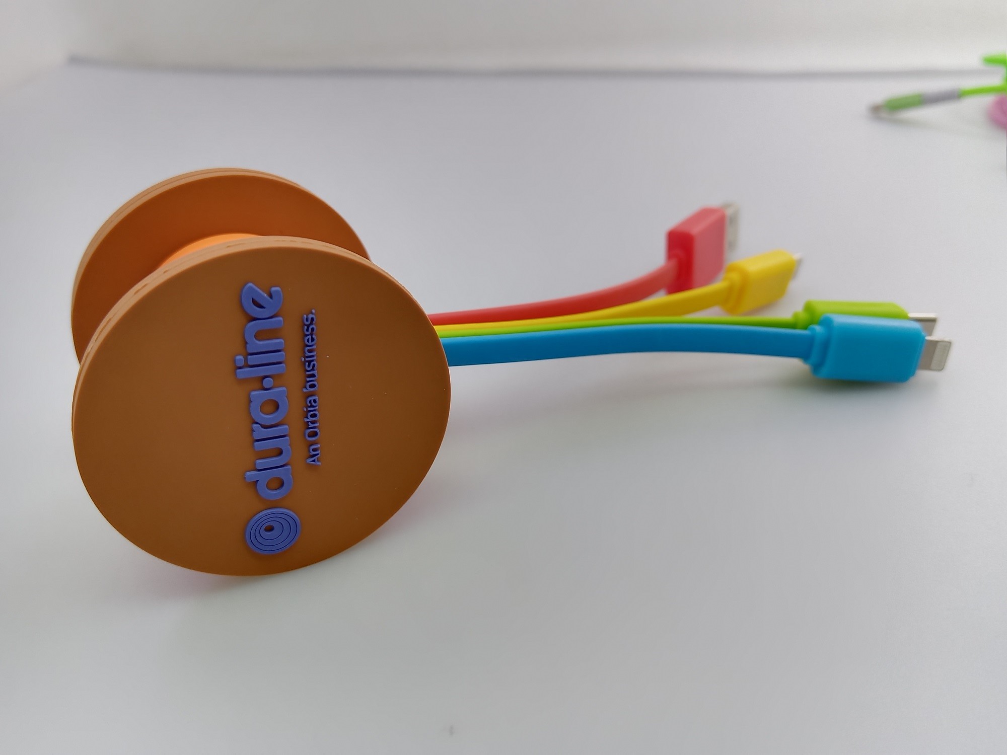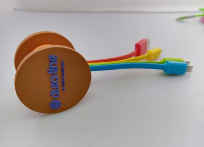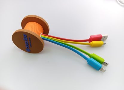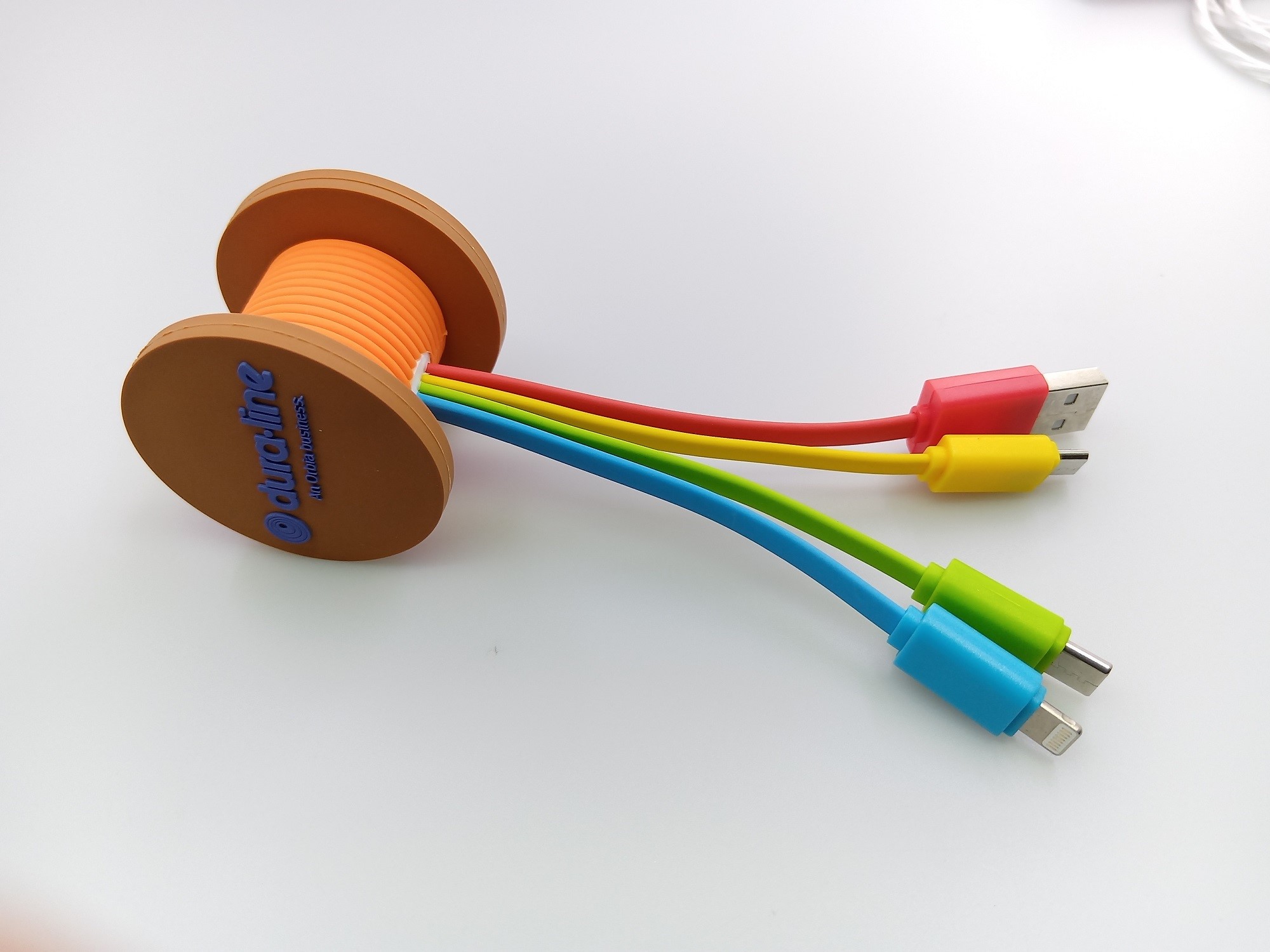 Navíc jsme na přání navrhli 3D motiv na napájecí kabely. Motiv „bubnu s návinem kabelů“ byl navržen podle reálných bubnů se kterými firma pracuje, tudíž skvěle vystihuje i specializaci firmy. Tento reklamní dárek rozhodně zůstane na každém pracovním stole.