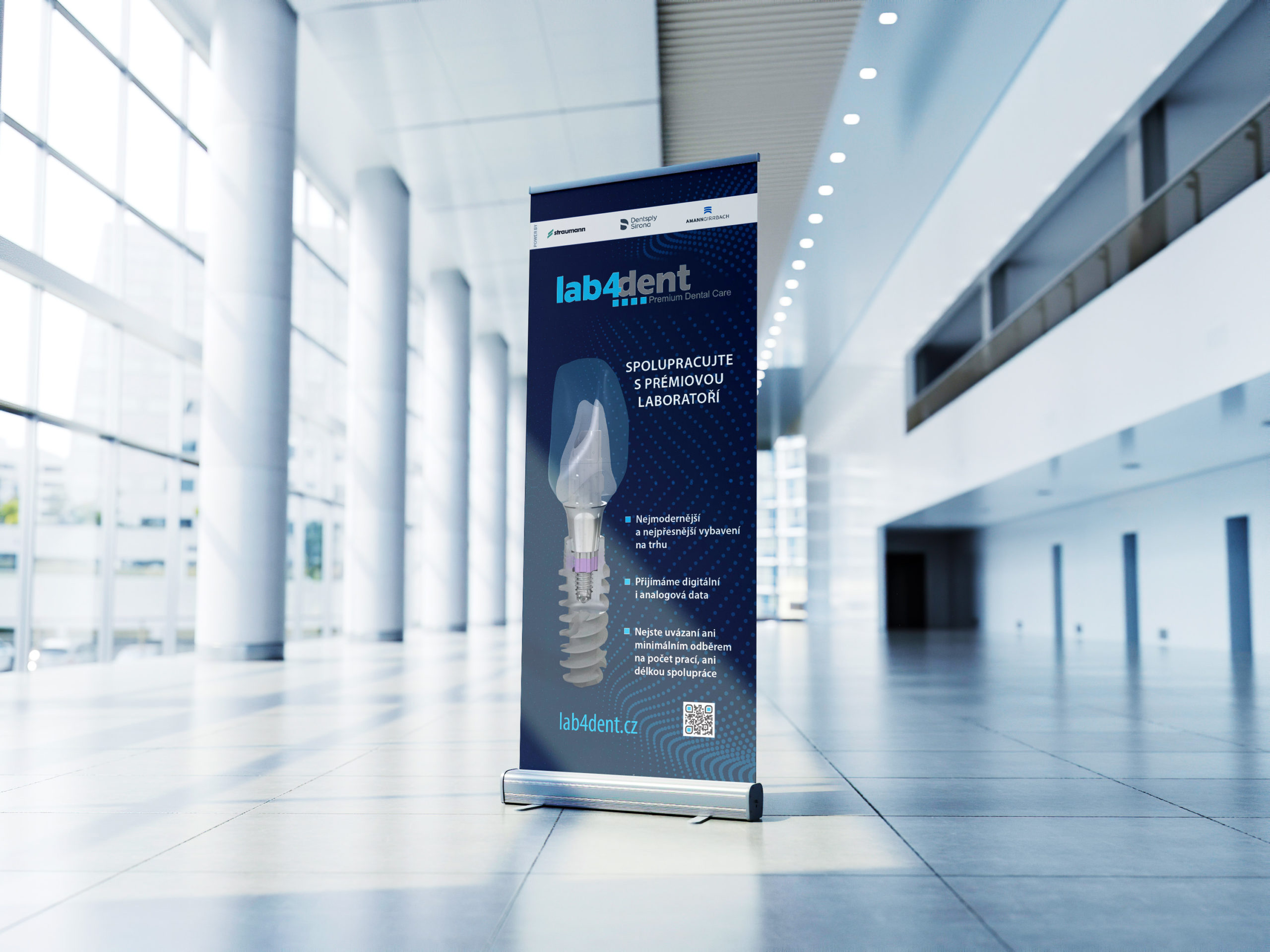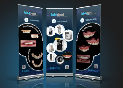 Roll upy jsou ideálním řešením pro prezentaci na cestách. Díky tomu může tým Lab4Dent prezentovat svou práci a vybavení laboratoří i vizuálně, kdekoliv a jednoduše.