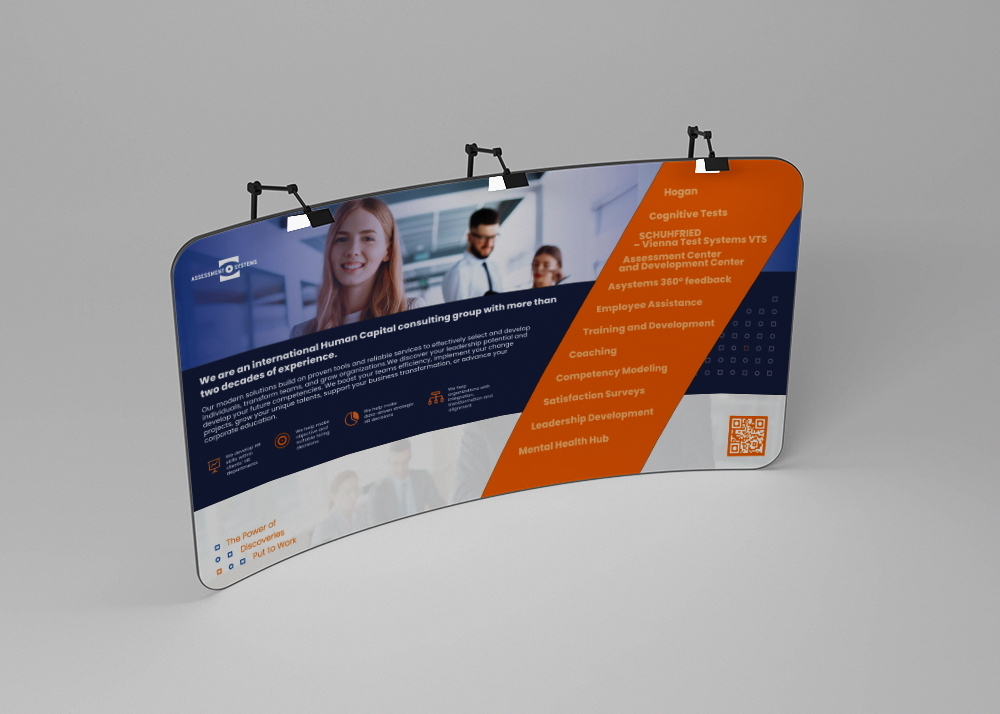 Vytvoření profesionálního a vizuálně působivého prostoru na veletrzích, konferencích, výstavách či v prodejnách. Díky svému zakřivenému designu nabízí vynikající vizibilitu z různých úhlů a stává se středobodem pozornosti.