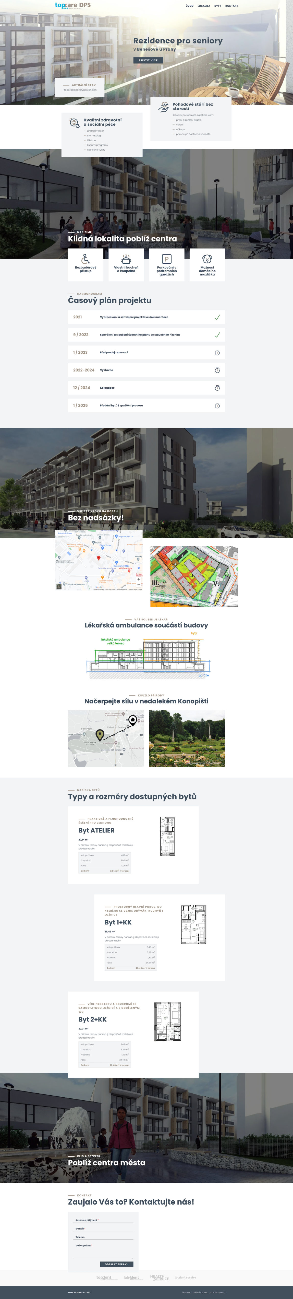 Všechny společnosti z rodiny TopDent jsou našimi dlouholetými klienty. Tentokrát se na nás obrátili s požadavkem vytvořit webové stránky pro lokálně unikátní projekt. Navrhli jsme grafickou podobu webu a následně ho uvedli v život. V další fázi budeme web rozšiřovat o rezervační systém, aby zájemci viděli, které bytové jednotky jsou již prodané, které rezervované a které ještě volné.