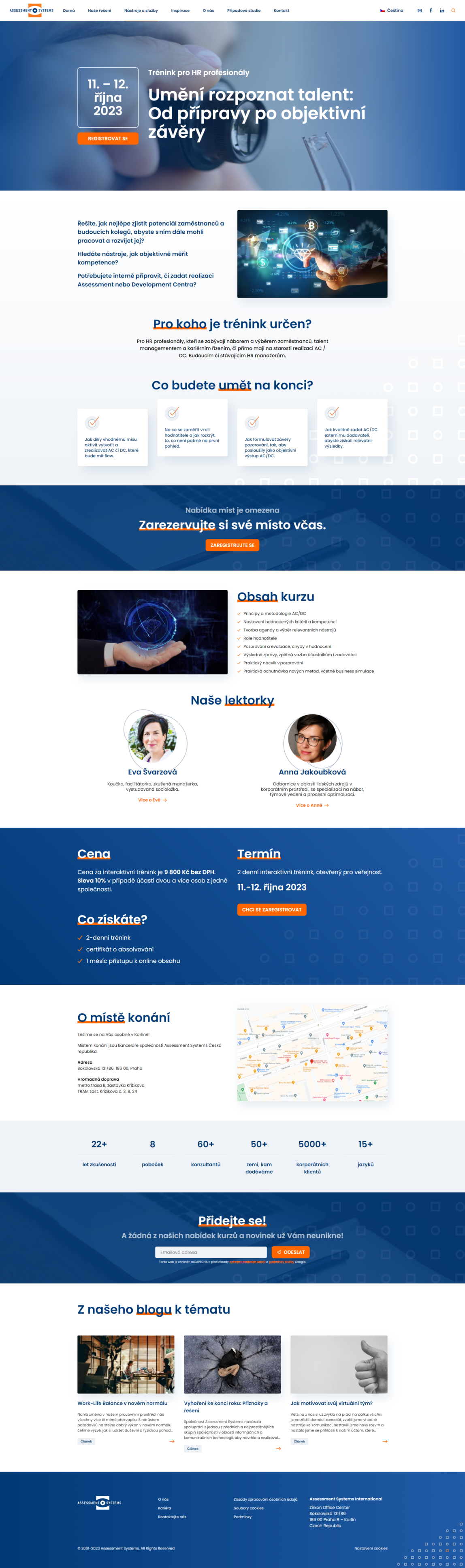 Jednoduchá a přehledná microsite stránka vytvořená pro konkrétní účely a to přihlášení se na event. V tomto případě se jedná o kurz pro HR profesionály vedené specializovanými lektorkami.