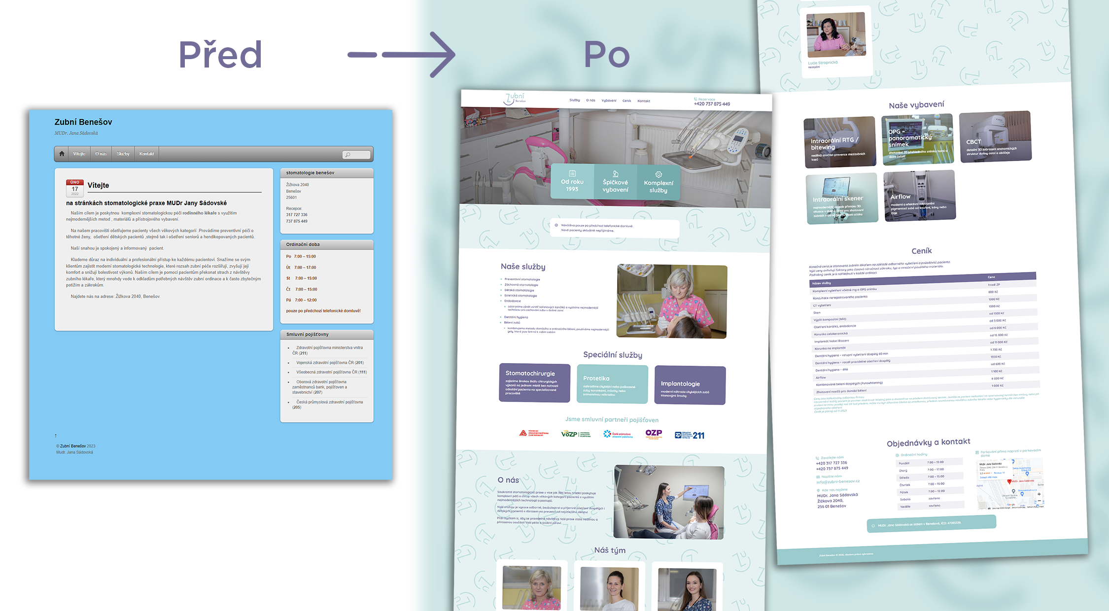 Webové stránky nabízejí srozumitelné a snadno dohledatelné informace, které pacienti potřebují. Díky vizuálně atraktivnímu designu a jednoduché navigaci se stávají klíčovým prvkem pro efektivní komunikaci s pacienty, kteří vyhledávají kvalitní a moderní zubní péči.